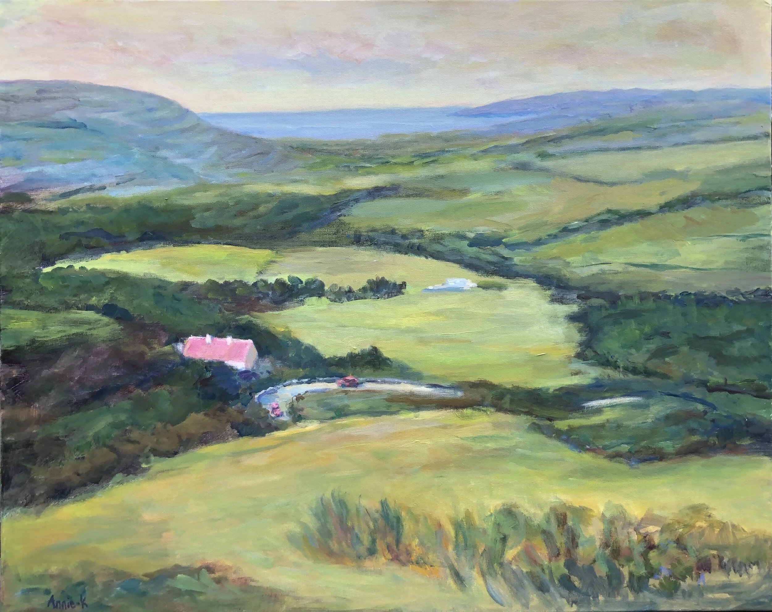 Annie’s strong connection to the environments that she paints influences her compositions. In simplifying the composition and not being overly explicit, her intent is to capture the effects of light, movement, mood and space in the landscape using value relationships and color. Annie’s goal for each painting is to create a visual dialogue of opposing elements and to create a narrative within the two-dimensional space. Annie’s landscape paintings are created using direct observation, photos and videos. Her portfolio is reflective of her love for the Crystal Coast of North Carolina and her childhood home of Western Ireland.